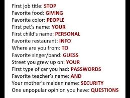 But wait. What about social engineering? You know, the practice of bad actors attempting to gather information from an unsuspecting user with the goal of infiltrating a private system masquerading as the victim? Because these security questions are facts, and they seem innocuous enough alone, people do not protect this information (looking at you, viral facebook images).